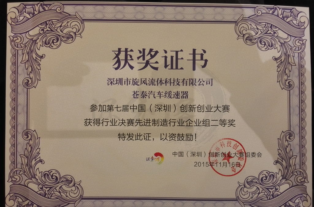 我公司蒼泰汽車緩速器項目,在中國創(chuàng)新大賽中,殺入全國行業(yè)總決賽。并獲得深圳市行業(yè)決賽先進制造行業(yè)企業(yè)組二等獎。