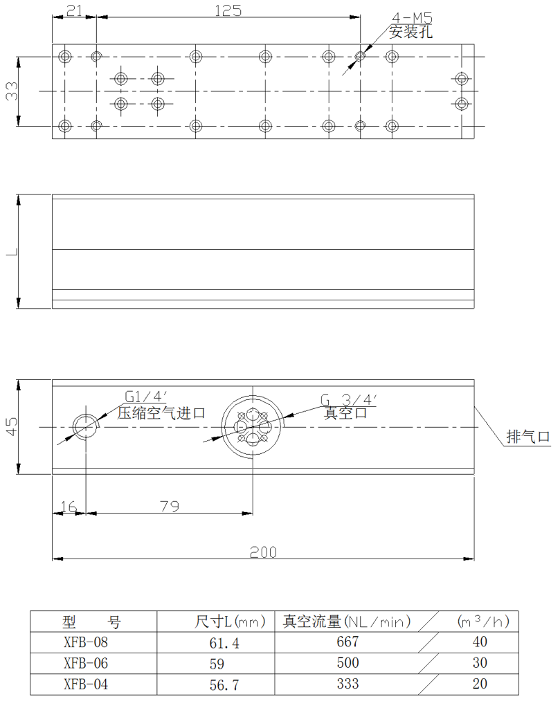 在旋風(fēng)系列真空發(fā)生器中,XFB系列多級(jí)真空發(fā)生器是中等流量的真空發(fā)生器,其特點(diǎn)是: